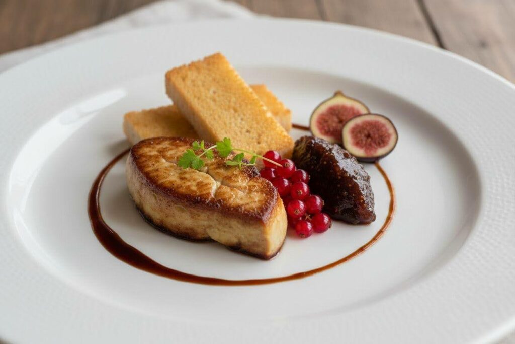 - Foie gras poêlé – Cette méthode révèle le goût délicat du foie gras, à savourer avec fruits legumes marché de saison.